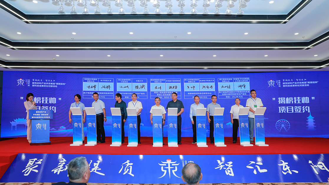 活动内容丰富,形式多样。一批前期发布并已成功实现对接合作的“揭榜挂帅”项目、科技成果转化合作项目、上下游产业链合作项目在会上集中签约。还聘请了浙江大学、浙江工业大学、杭州电子科技大学、安徽大学的四位专家教授为东阳市磁性材料产业发展顾问。