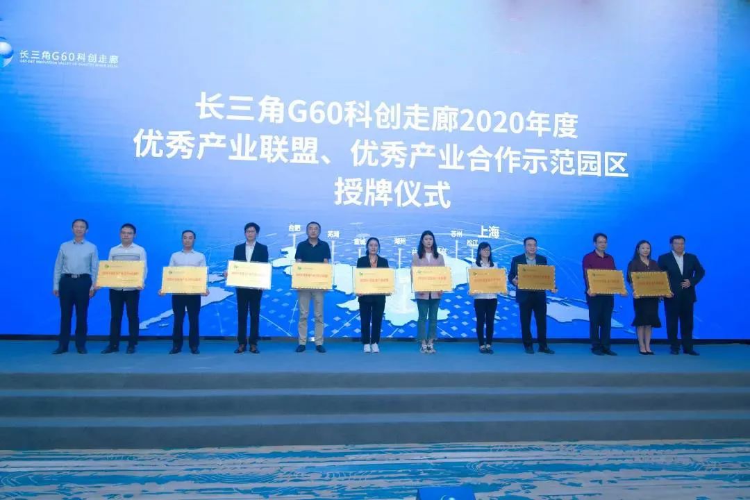 会议总结了长三角G60科创走廊产业联盟和产业合作示范园区建设情况,并对2020年度优秀产业联盟、产业合作示范园区进行了授牌。G60科创走廊新材料产业技术创新联盟被授予2020年度优秀产业联盟。