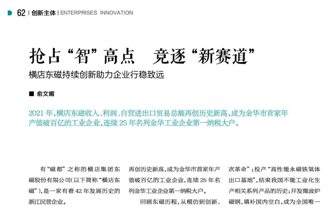 《今日科技》杂志刊发《抢占“智”高点 竞逐“新赛道”》,对横店东磁持续创新推动企业高质量发展的做法进行了介绍。