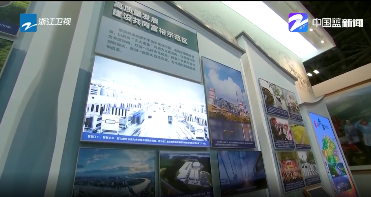 据悉,“奋进新时代”主题成就展设序厅、中央综合展区、地方展区、展望展区、室外展区和互动展区,生动诠释了新时代十年党和国家事业的伟大成就、伟大变革。作为该展重要部分的浙江展区,紧扣“奋进新时代”主题,分为“忠实践行‘八八战略’ 奋力打造‘重要窗口’”“数字化改革引领系统性大变革”“跳出浙江发展浙江”“绿水青山就是金山银山”“一体推进平安浙江法治浙江建设”“高质量发展建设共同富裕示范区”六个部分。东磁电池片七厂是全省首批“未来工厂”——电池片六厂的升级版,是全省智能工厂的代表,其照片位于“高质量发展建设共同富裕示范区”的醒目位置。