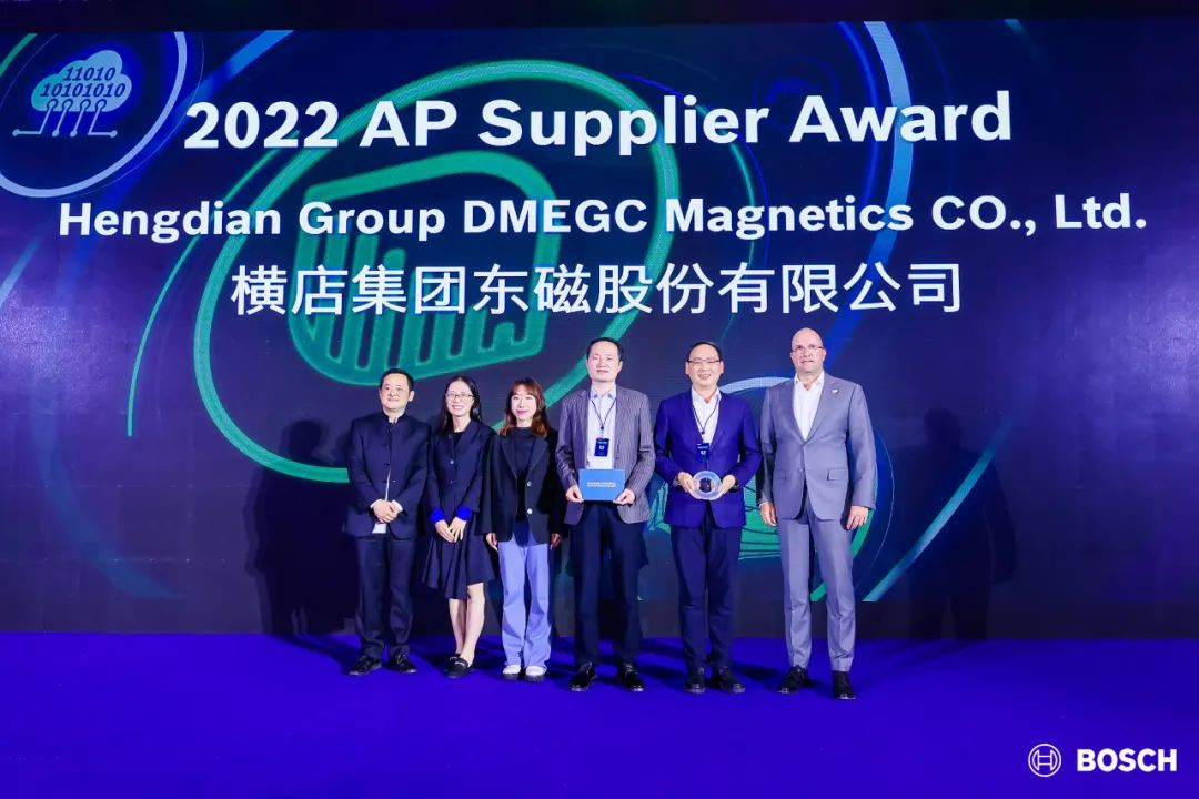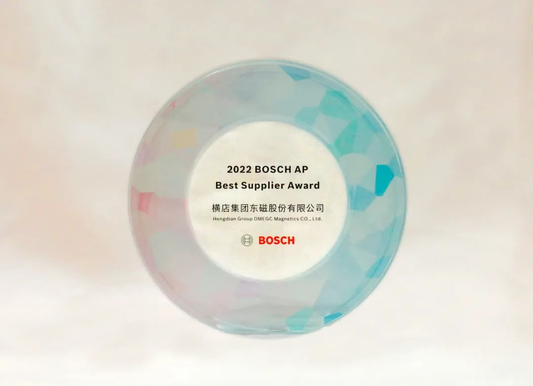 日前,横店东磁凭借多年来在磁性材料供应上做出的贡献,被评为2022年度“博世亚太区最佳供应商”,是此次唯一获此奖项的磁性材料企业,也是继2019年获博世全球最佳供应商大奖后的又一殊荣。